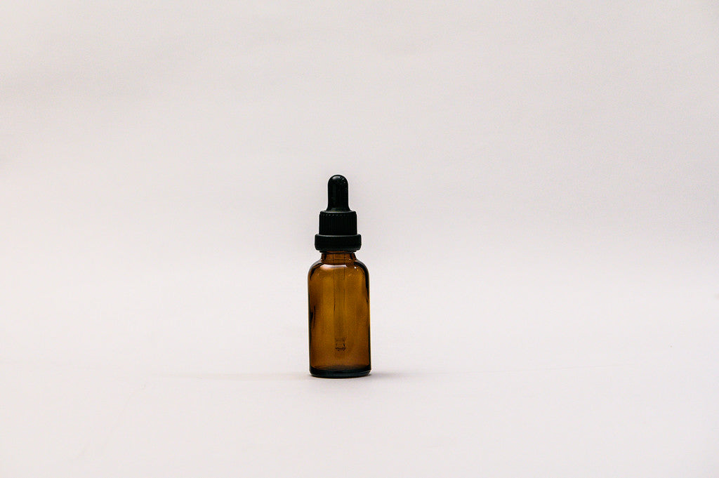 Gotario de vidrio ámbar de 30 ml con tapa con sello de seguridad negro, goma (También llamada bulbo o tetina) negra y pipeta.