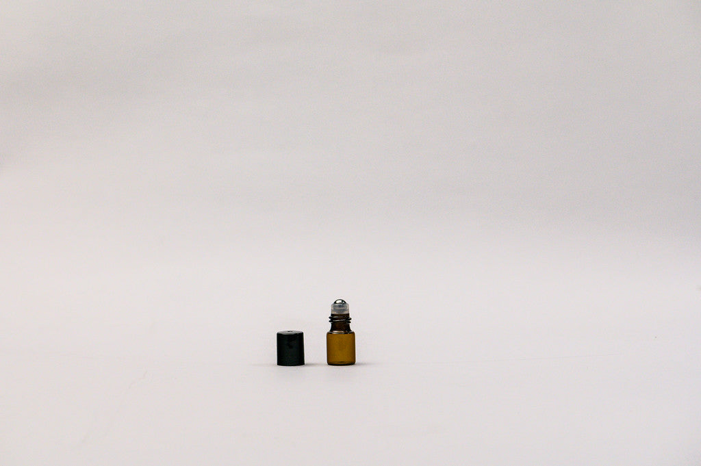 Botella, frasco o envase roll on de vidrio ámbar de 2 ml con bola metálica de acero, tapa negra y dosificación fluida. Bola de calidad que gira fácilmente y no se traba.